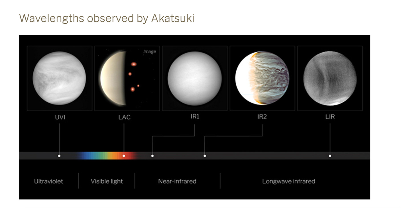 b. The spacecraft carries advanced instruments like multi-wavelength cameras for studying Venus' clouds and weather, spectrometers for atmospheric analysis, and a camera for detecting lightning and night glow phenomena on Venus. Below is an image of the spacecraft.c. Since entering Venus' orbit, Akatsuki has revealed new aspects of Venusian meteorology, including discovering a massive atmospheric wave and providing detailed analyses of cloud patterns and movements.