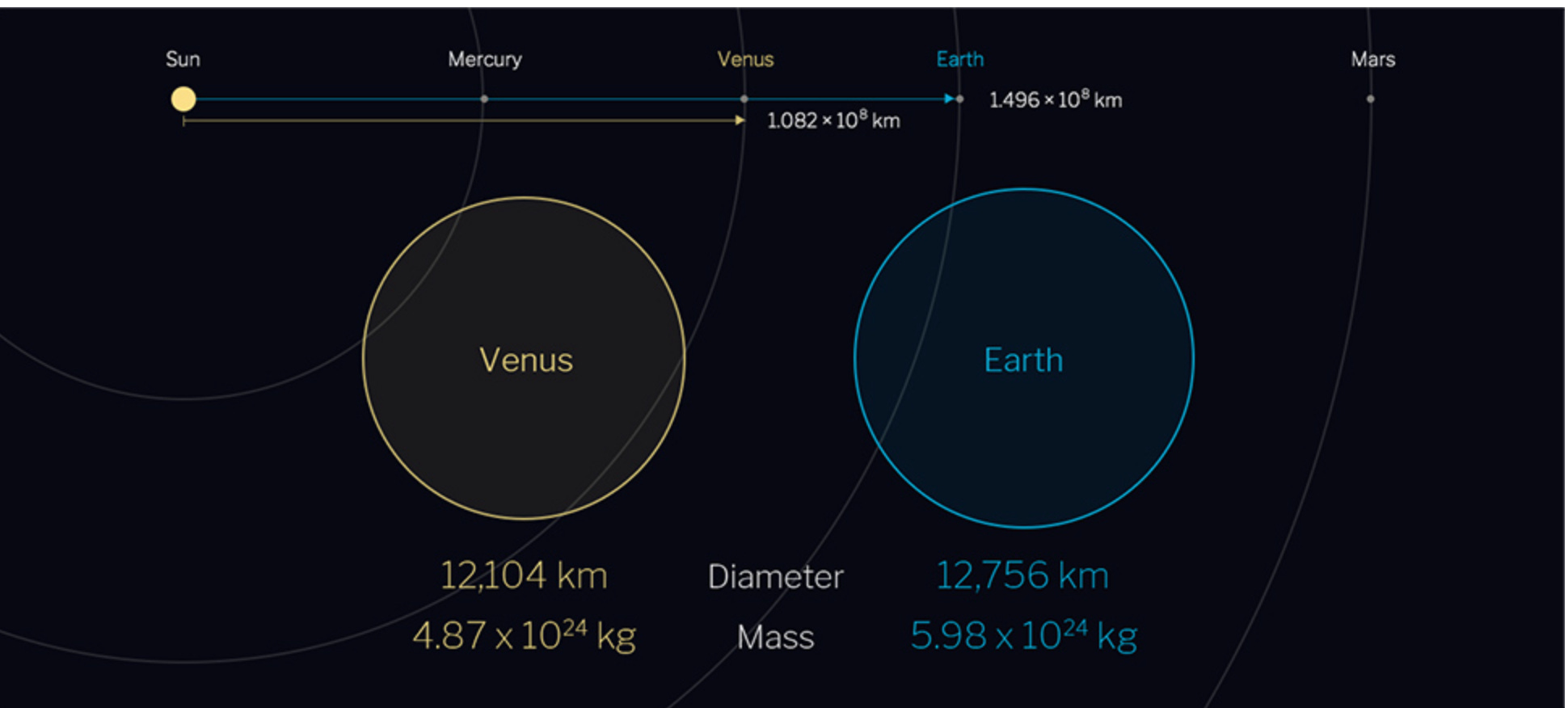 a. The aim of the mission was to delve into Venus' atmospheric dynamics, cloud physics, surface conditions, weather patterns, and the potential for lightning and volcanic activities. According to their official page : “Exploration of Venus helps us better understand our own planet. Both the Earth and Venus are believed to have been born about 4.6 billion years ago. At the time, there may have been oceans on Venus like that found on the Earth. However, Venus today has no oceans and is covered by dense atmosphere composed of carbon dioxide. Venus is closer to the Sun than the Earth, so the temperature is higher and more water molecules evaporate into the atmosphere.”Below is an image showing both planets of Venus and Earth and their position to the Sun.