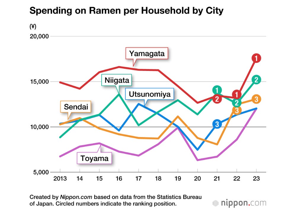 They are the Japan's top spender on ramen, according to a recent household survey by the Internal Affairs and Communications Ministry.