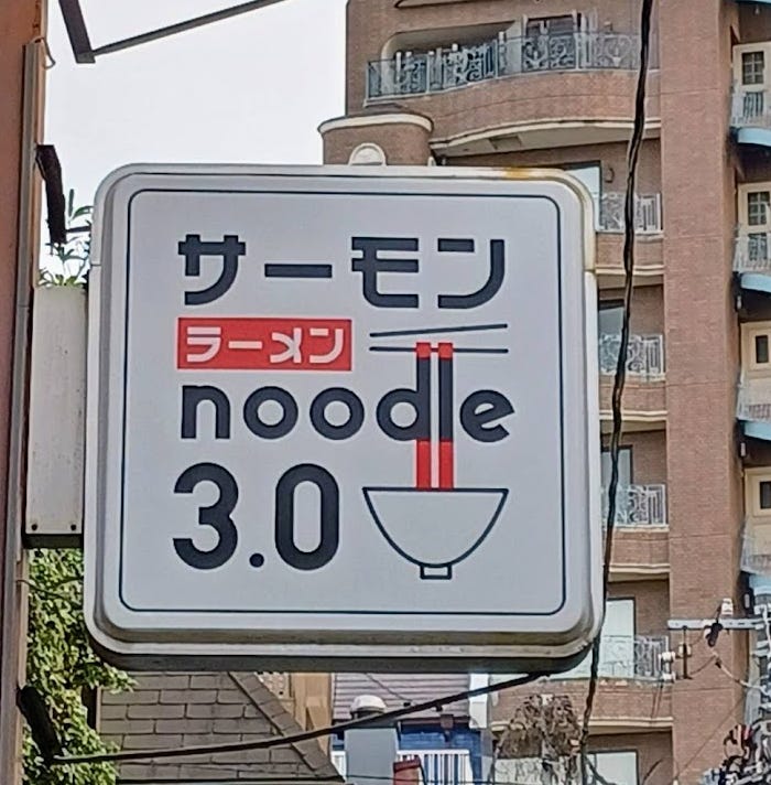 I got inspired to embark on a mission to find cool ramen places that are popular throughout Japan, not just in Tokyo. During my search, I discovered a cool spot called Salmon Noodle 3.0, a French-inspired version of ramen. The "3.0" in the shop's name is derived from software-upgrade jargon, reflecting the idea that their ramen is highly evolved and two steps ahead of the competition.