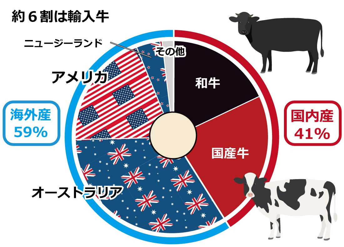 40% of beef consumption is supplied by Wagyu and other domestic breeds, while the remaining 60% is imported, primarily from Australia and the United States.