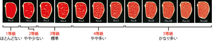 Fat Marbling: Assessed using the Beef Marbling Standard (BMS), which ranges from 1 to 12. A score of 8 to 12 is considered a high degree of marbling and corresponds to a grade of 5.